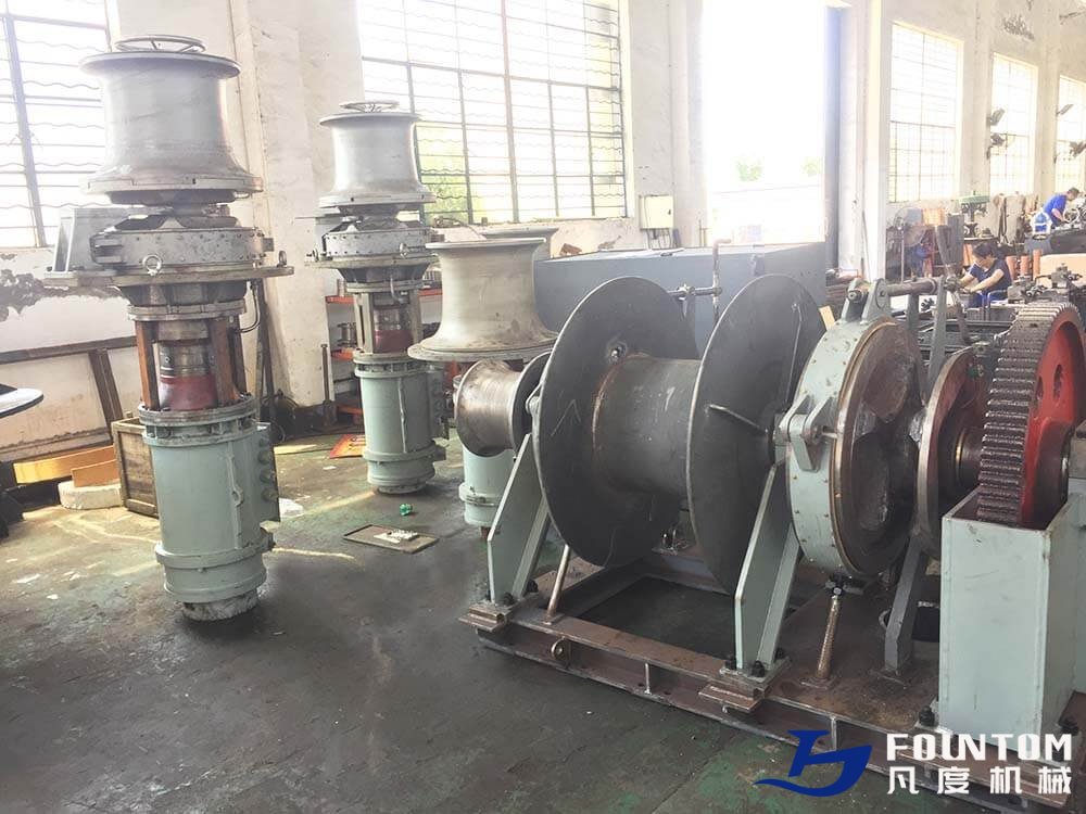 The necessary capacity of electric capstan rope winch results from the nominal rope pull and the related rope speed. The warping head is driven by an electric motor and the torque transmission gear is placed in the warping head. The motor of marine capstan is usually IP56 because of its special working occasions. Planetary gear box is often applied by capstans.