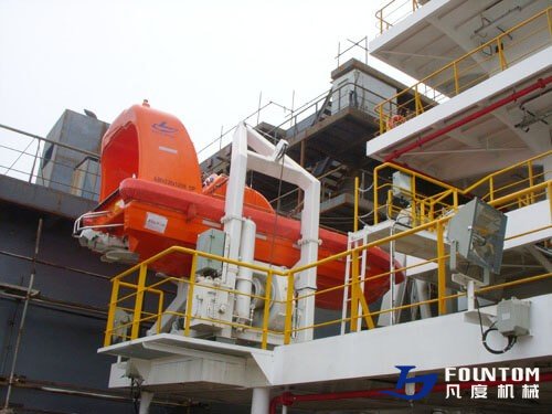 The electric A-frame (also called A type) fast rescue boat davit is a lifesaving machine which is specially used on board for launching and recovering a fast rescue boat. This appliance is provided with wave compensation unit, which meet with requirement for use on board the vessel.