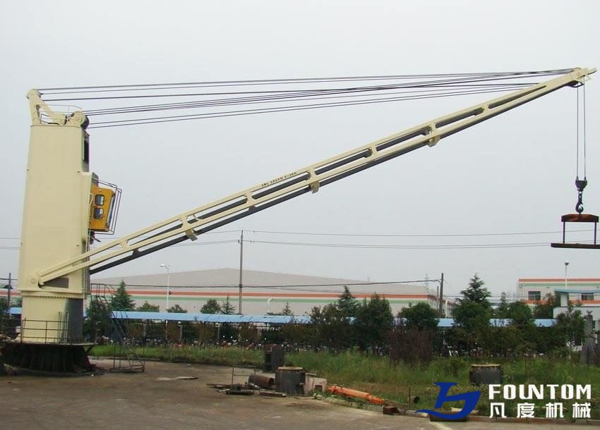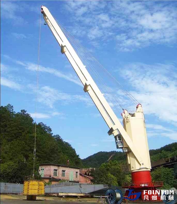 The marine deck cargo crane is commonly used as cargo container handling equipment. Its features are as follows: high lifting capacity, easy manipulation, enduring resistance, good braking performance, security, reliability, high efficiency on cargo loading and unloading, and good adaptability.