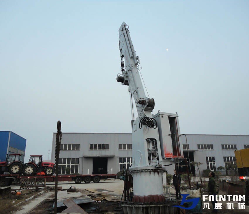 This series of Marine Telescopic Boom Crane can be of various types of marine vessels selected for lifting goods, spare parts, food use; the overall structure of the machine is divided into the base unit, rotary devices and boom three parts. The motor direct drive pump for pressure oil passes through the hydraulic system to the executing agency to complete the cargo lift. If for some reason have lost power or loss of pressure, all the action will automatically stop, to ensure the safety of crane systems and personnel.