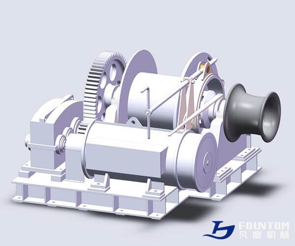 The main parts of mooring winch comprise electric motor, mooring drum, warping head (optional), gypsy wheel (for combined winch), gearbox, clutch unit, brake system, and so on. The electric motor drives the winch drum by gearbox to wind rope or cable during mooring work, the brake is fixed between the motor and input shaft. The winch operators can wrap the rope, cable or chain around the winch drum in mooring operations.