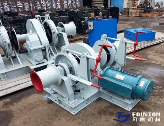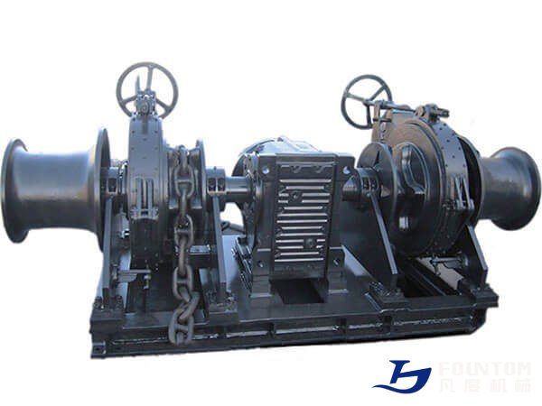 Hydraulic double gypsy anchor windlass is machine that restrains and manipulates the anchor chain on a boat, allowing the anchor to be raised and lowered by means of chain cable. It is designed for up to 160 mm anchor chains. It can be electric HPU driven or diesel engine HPU driven. Standard features include fabricated steel construction, gears hardened to exceed working load requirements, clutched and braked drum and corrosion resistance. Electric, hydraulic or diesel engine drives are available along with warping heads. Windlasses can be modified to suit customer’s applications and special operating requirements. The double anchor windlass has rugged design and heavy duty split bronze bearings. The operating mechanism for brakes and clutches are designed for easy and safe manual operation but may also be remotely operated by hydraulic cylinders. The brakes are easily adjustable. The windlass design provides easy access to all points for lubrication and inspections.